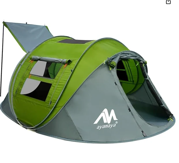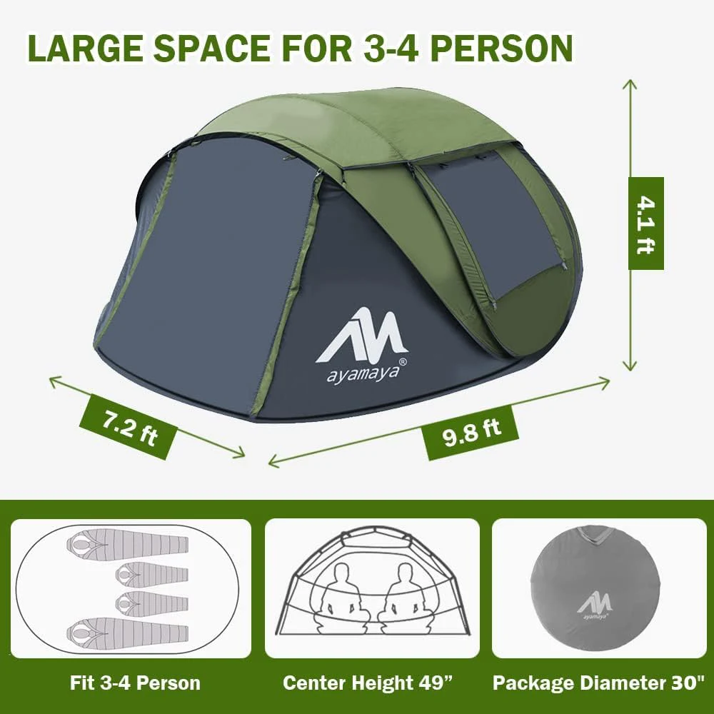 Tenda automática rápida de acampamento aberto, tendas de 4 pessoas para acampar tendas familiares instantâneas à prova d'água com clarabóia e chuva removível, atualizada tamanho grande com 2 portas -barraca de praia fácil de fácil configuração com postes