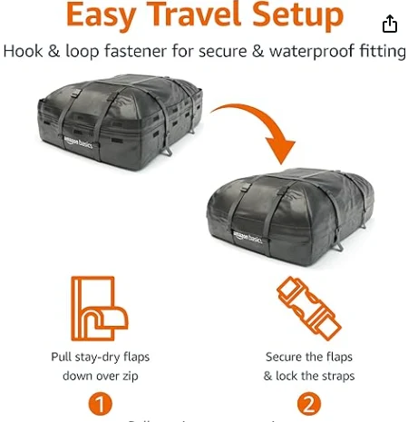Saco de carga dobrável de telhado de carro, feito de material 100% à prova d'água, lona de pvc 600d, material de grade com tecnologia de tensão de alta frequência, bolsa de estilo durável e pesado;