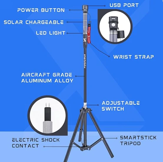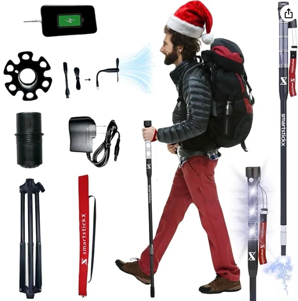 Pólo de trekking de luz LED, luz LED que fornece impressionantes 400 lúmens de saída de luz mais fortes do que a lanterna de mão média que pode durar até 10 horas em uma única carga. Pólos de trekking de alta qualidade para caminhadas, camping ou qualquer outra atividades noturnas e uma luz piscando para qualquer situação de emergência