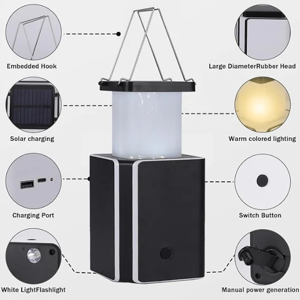 LED LIGHT SOLAR CAMPING. LED em emergência recarregável SMD2835 chip de lúmens altos no interior. Além disso, há uma alça no corpo da lâmpada, você pode segurá -lo ou pendurá -lo em qualquer lugar que precisar, muito conveniente