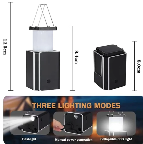 IPX4, Luzes de emergência Geração de energia da manivela das mãos, função de energia móvel para fonte de alimentação de celular, luzes de emergência, lanternas, luzes de aviso de SOS., LED solar LED recarregável Camping Lantern, recarregável solar, recarregável tipo C,