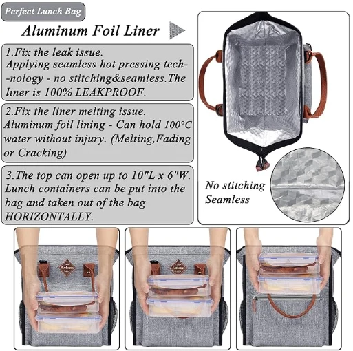 O saco de refrigerador de alumínio ao ar livre, o forro, é 100% à prova de vazamentos, fácil de limpar e não derrete facilmente. O tecido de nylon é resistente à água e o zíper superior é à prova d'água. As funções de impermeável e isolada desta lancheira são excelentes.