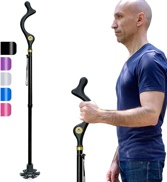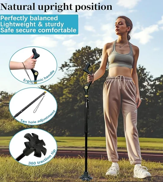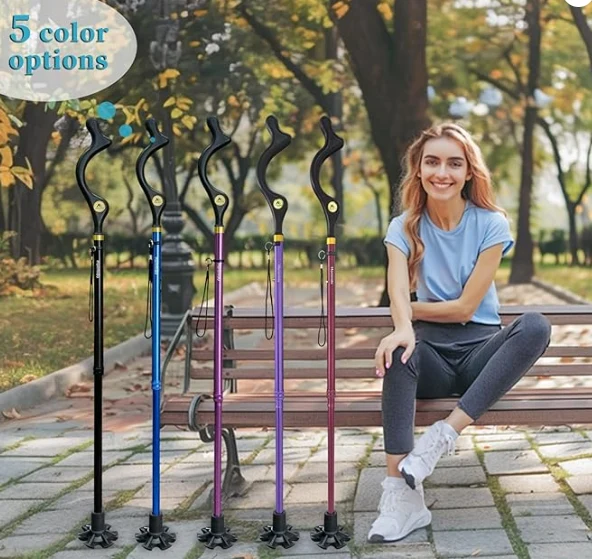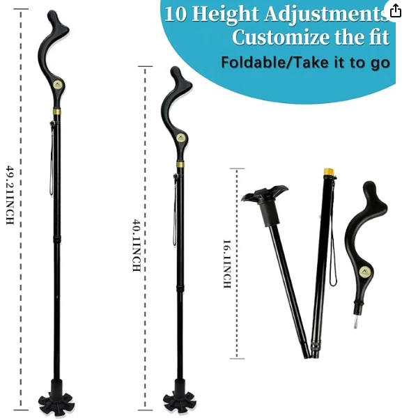 Equipamento de escalada ao ar livre Caminhada, bengala de caminhada dobrável para homens e mulheres idosos para equilíbrio, cana dobrável de pé, altura ajustável anti-deslizamento leve liga de liga leve colapsável para mobilidade de viagem ajuda