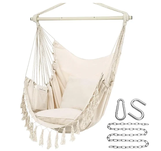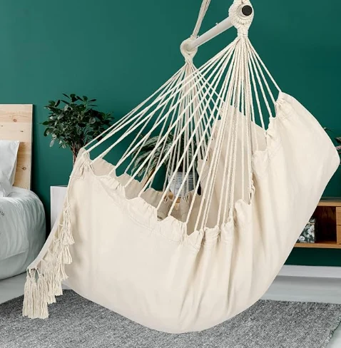 Costura de paraquedas penduradas Hammock. Pendurado a qualquer hora, em qualquer lugar. Basta encontrar uma moldura de galho, viga ou rede, cadeira de grande giro para fora ou dentro ou interna. É muito adequado para uso em quartos, como decoração de quarto, varandas, pátios e jardins. Se você precisar de um retorno, não remova a etiqueta da cadeira oscilante