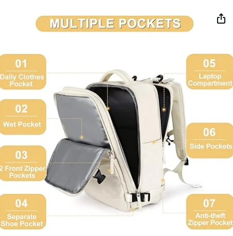 Mochila à prova d'água unissex, o bolso diário de roupas pode conter 4-6 peças de tops ou calças finas, que podem atender às necessidades de viagens curtas ou viagens de negócios por 2-3 dias; Também pode ser usado para armazenar artigos de papelaria universitários, como revistas, e o compartimento de laptop separado pode